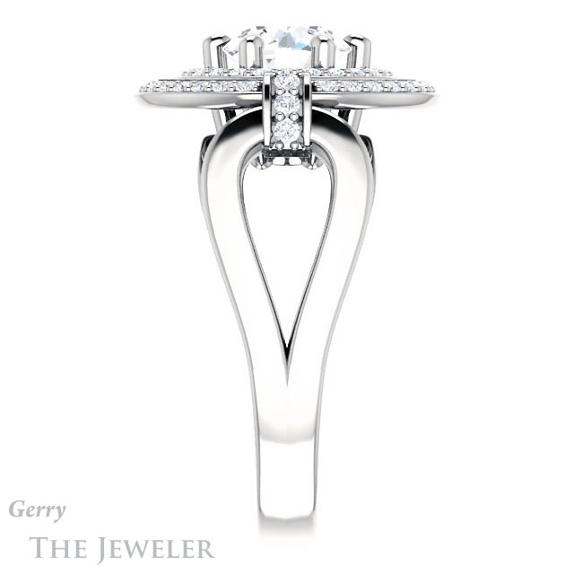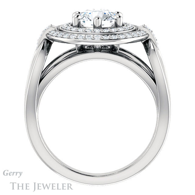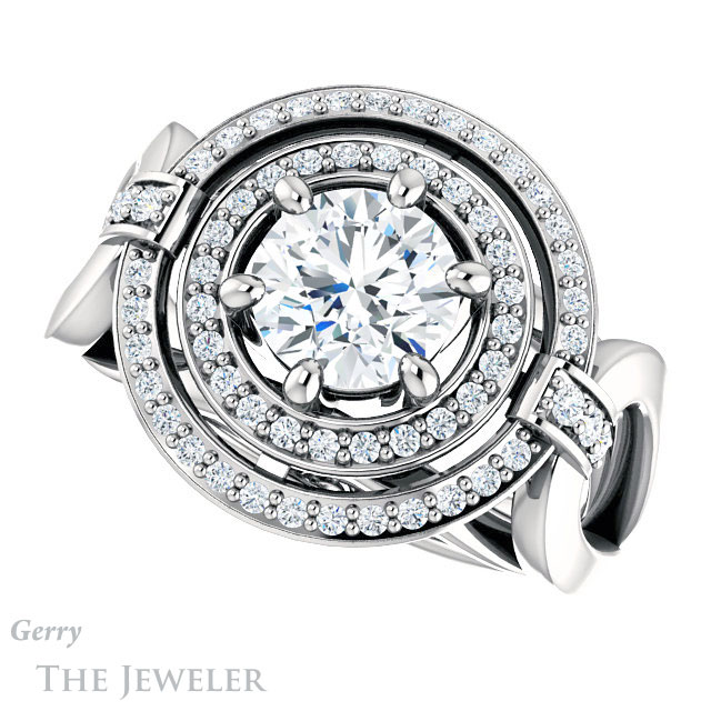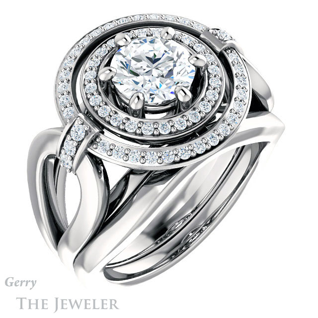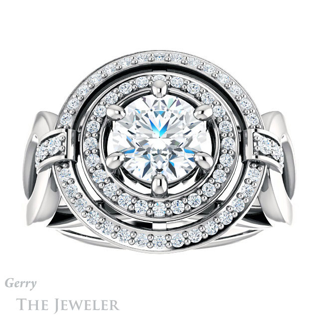 - This design can be set with your choice of certified lab grown diamond or moissanite center gem.Â