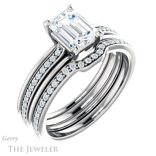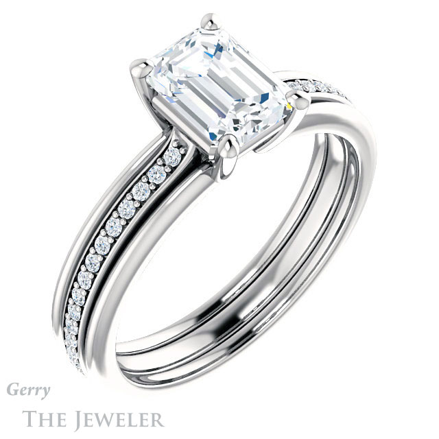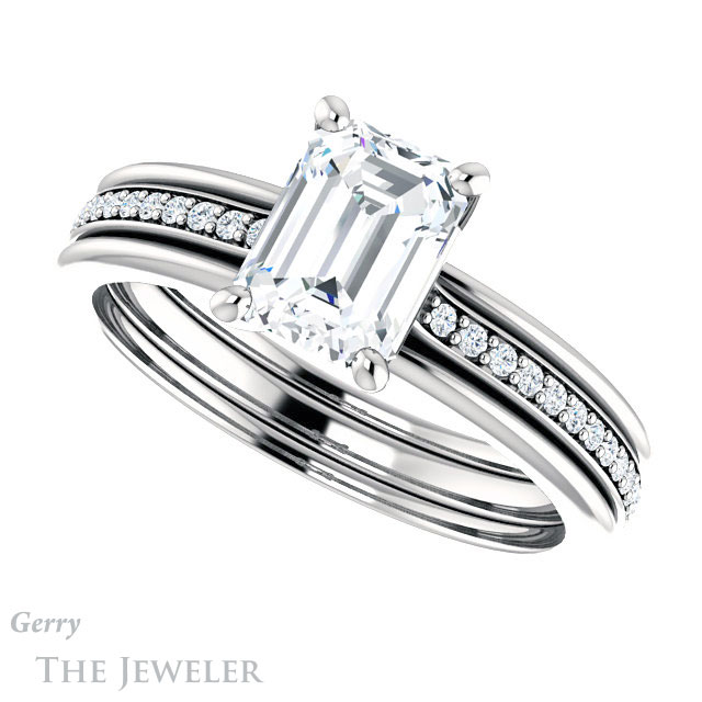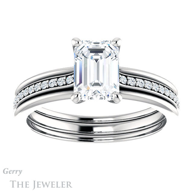 Emerald Cut Forever One Moissanite Engagement Ring #GTJ1205-emerald-fb-w