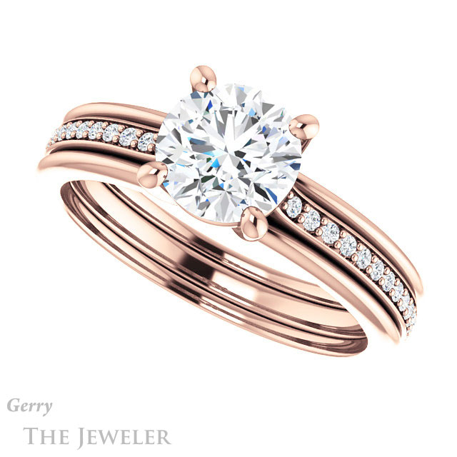 - This design can be set with your choice of certified lab grown diamond or moissanite center gem.Â