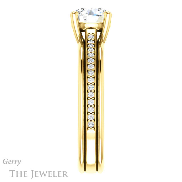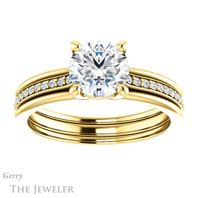 - This design can be set with your choice of certified lab grown diamond or moissanite center gem.Â