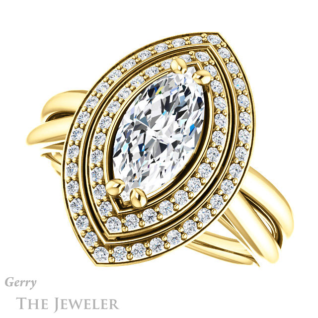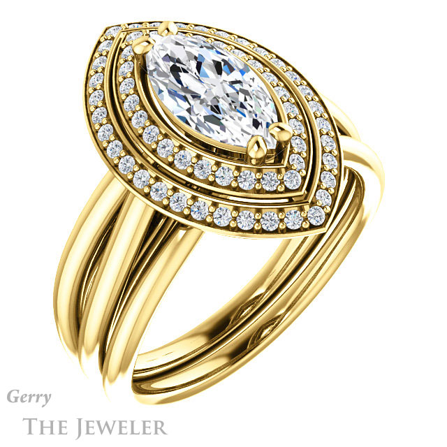 Marquise Cut Forever One Moissanite Engagement Ring #GTJ1210-marquise-fb-y