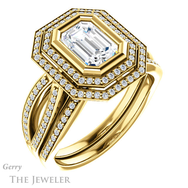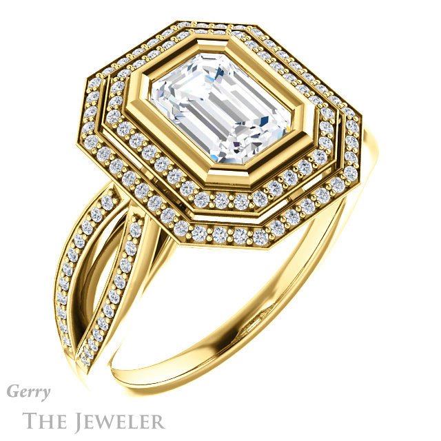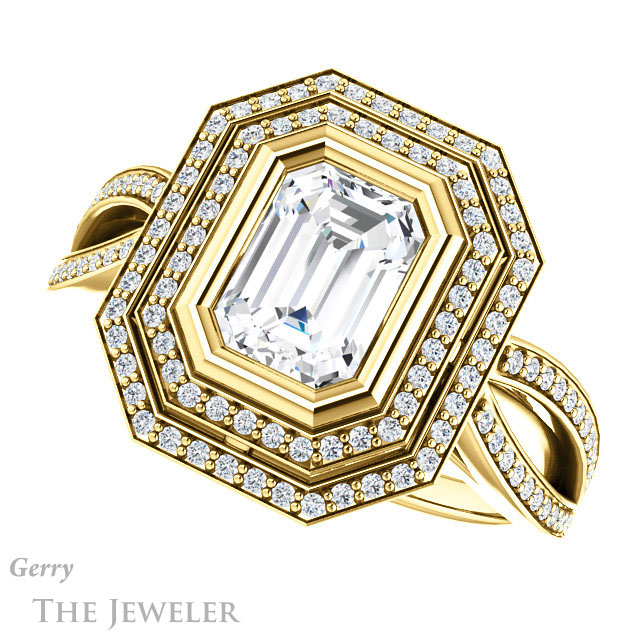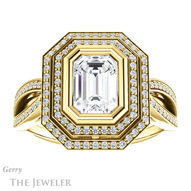 Emerald Cut Forever One Moissanite Engagement Ring #GTJ1212-emerald-fb-y