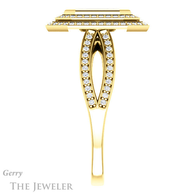 - This design can be set with your choice of certified lab grown diamond or moissanite center gem.Â