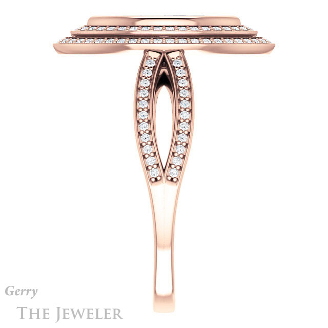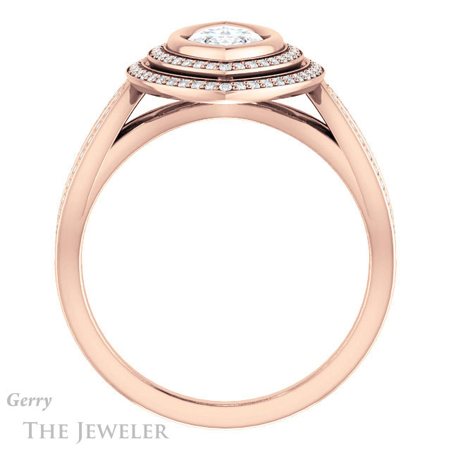 - This design can be set with your choice of certified lab grown diamond or moissanite center gem.Â