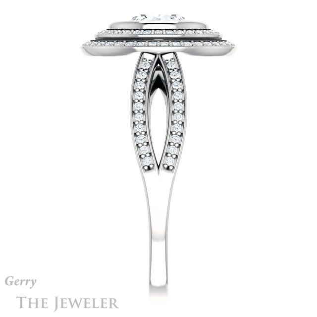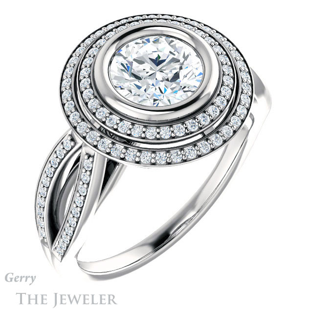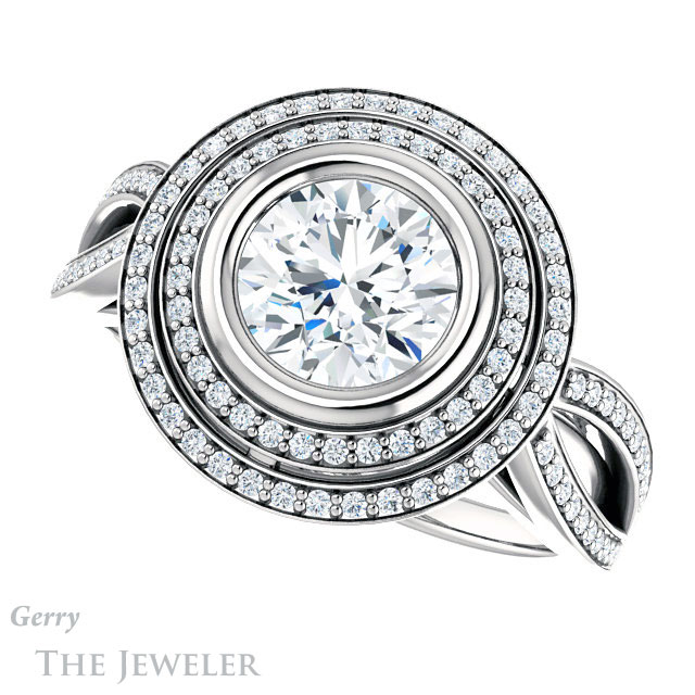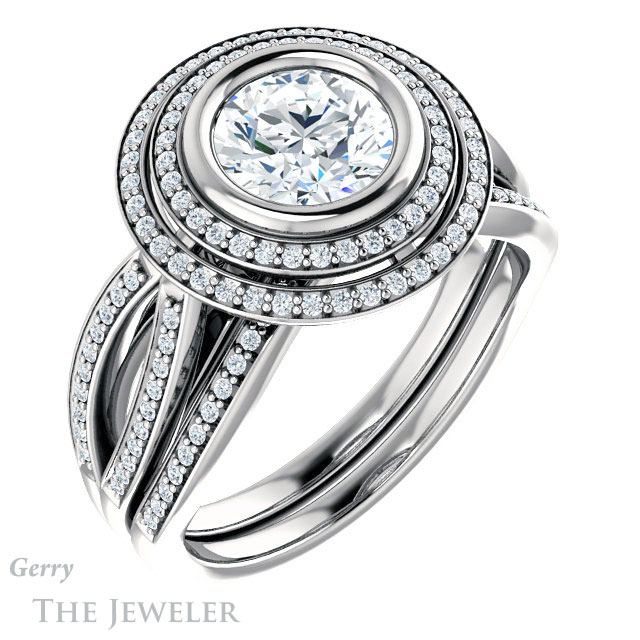 - This design can be set with your choice of certified lab grown diamond or moissanite center gem.Â