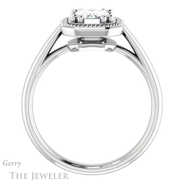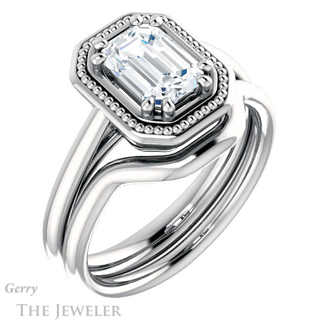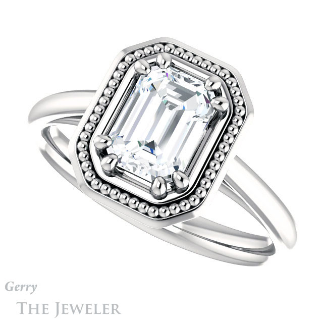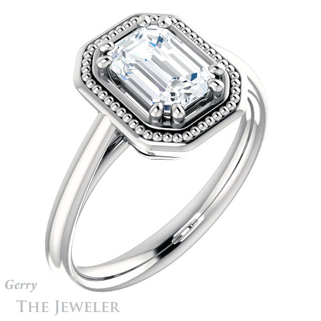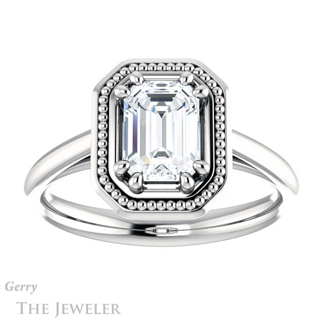 Emerald Cut Forever One Moissanite Engagement Ring #GTJ1215-emerald-fb-w