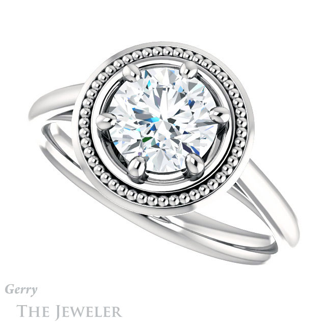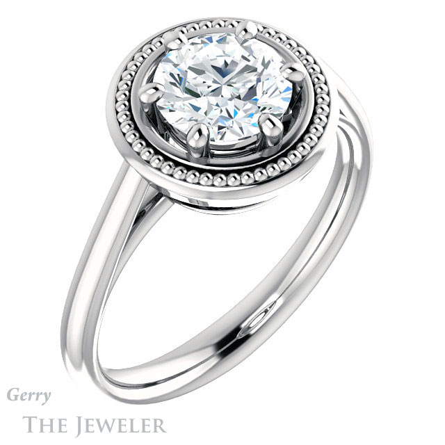 Round Cut Forever One Moissanite Engagement Ring #GTJ1215-round-fo-w
