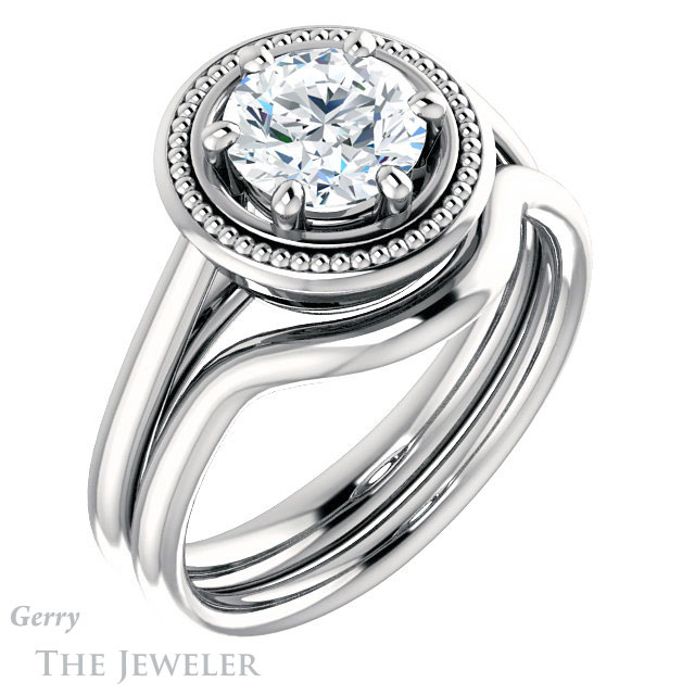 - This design can be set with your choice of certified lab grown diamond or moissanite center gem.Â