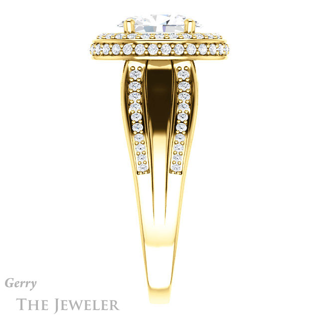 - This design can be set with your choice of certified lab grown diamond or moissanite center gem.Â