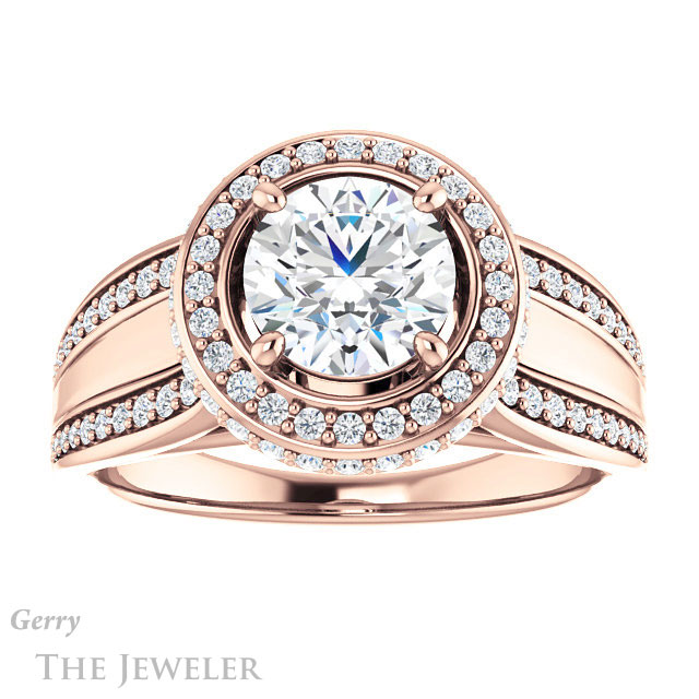 - This design can be set with your choice of certified lab grown diamond or moissanite center gem.Â