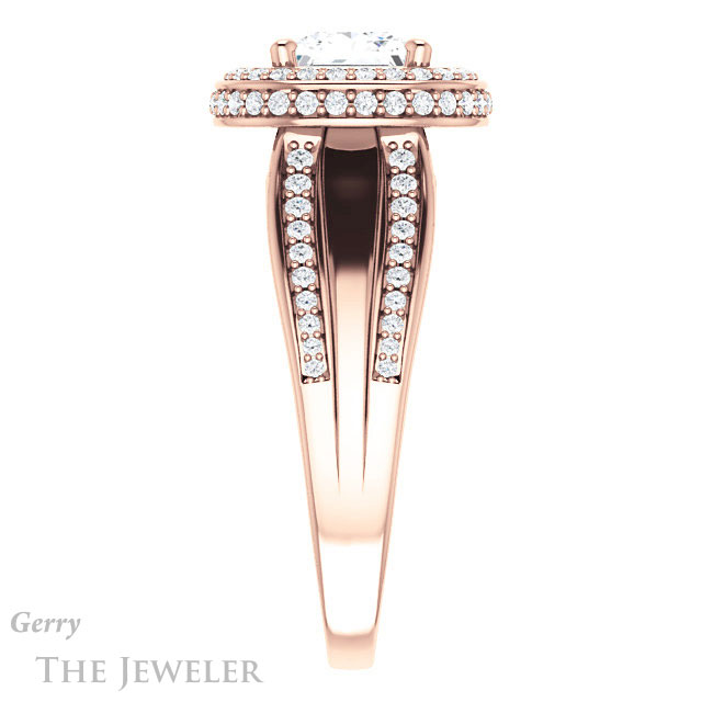 • This design can be set with your choice of certified lab grown diamond or moissanite center gem.