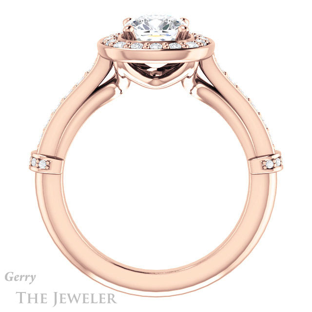 - This design can be set with your choice of certified lab grown diamond or moissanite center gem.Â