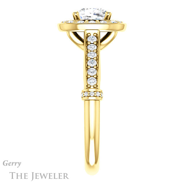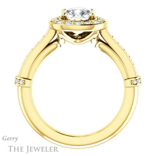 - This design can be set with your choice of certified lab grown diamond or moissanite center gem.Â