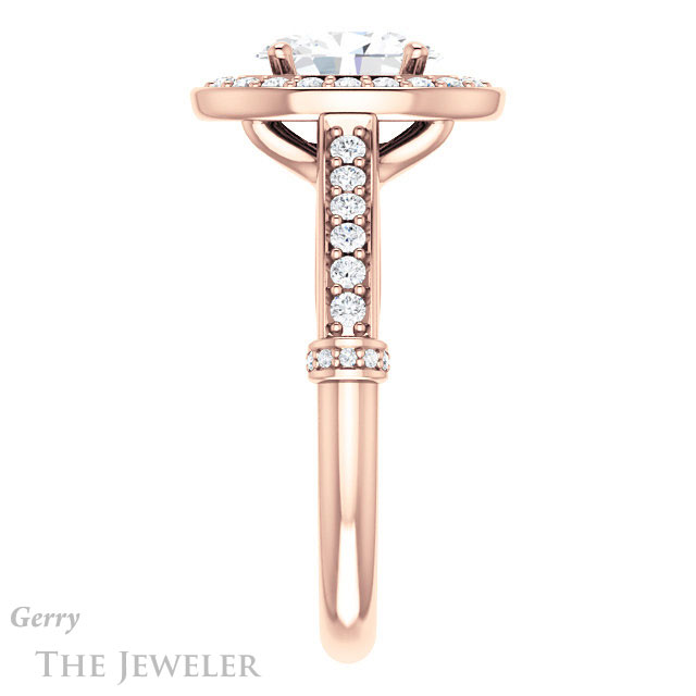 - This design can be set with your choice of certified lab grown diamond or moissanite center gem.Â