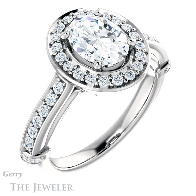 Oval Shaped Forever One Moissanite Engagement Ring #GTJ1219-oval-fo-w