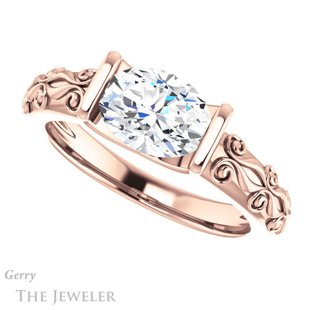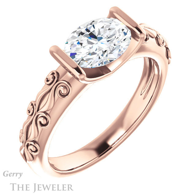 - This design can be set with your choice of certified lab grown diamond or moissanite center gem.Â
