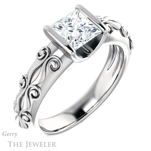 Princess Cut Forever One Moissanite Engagement Ring #GTJ1223-square-fo-w