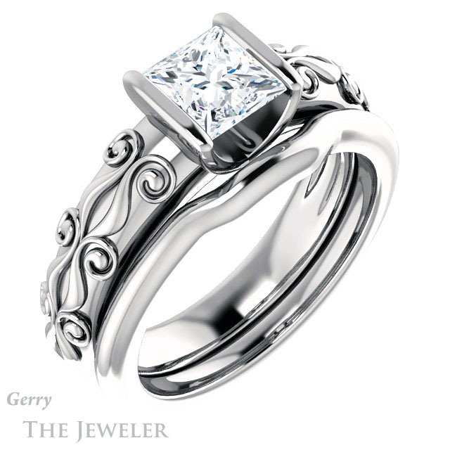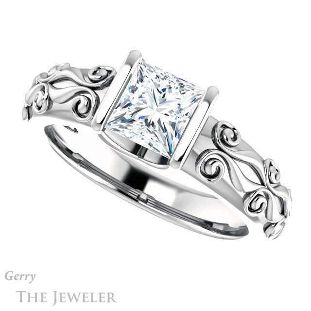 - This design can be set with your choice of certified lab grown diamond or moissanite center gem.Â