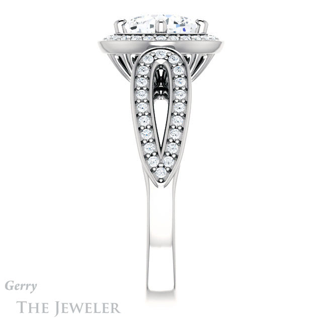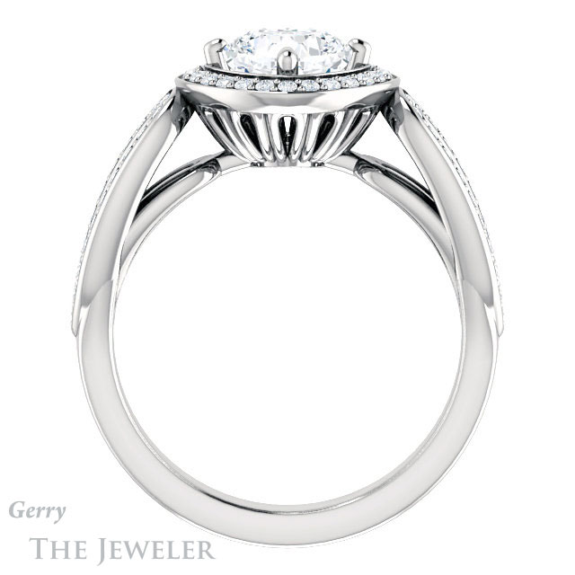 - This design can be set with your choice of certified lab grown diamond or moissanite center gem.Â