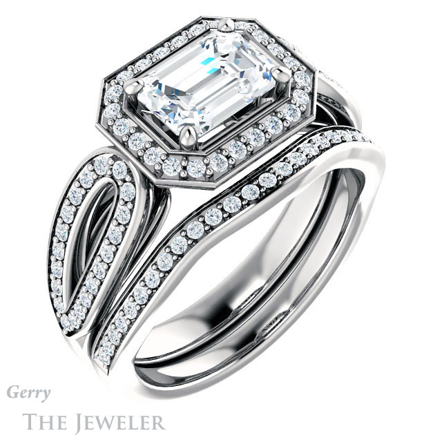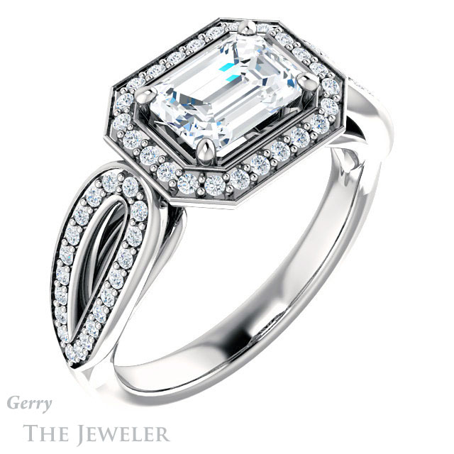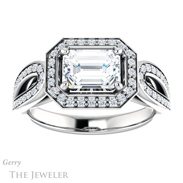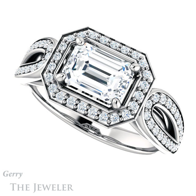 Emerald Cut Forever One Moissanite Engagement Ring #GTJ1226-emerald-fb-w