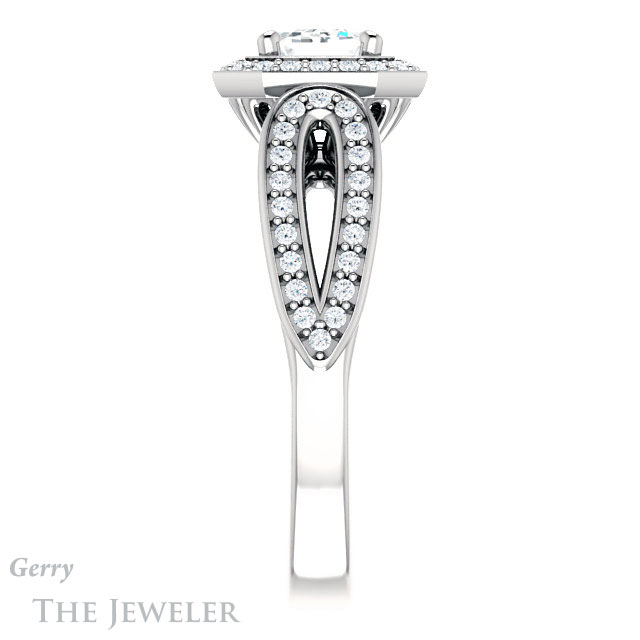 - This design can be set with your choice of certified lab grown diamond or moissanite center gem.Â