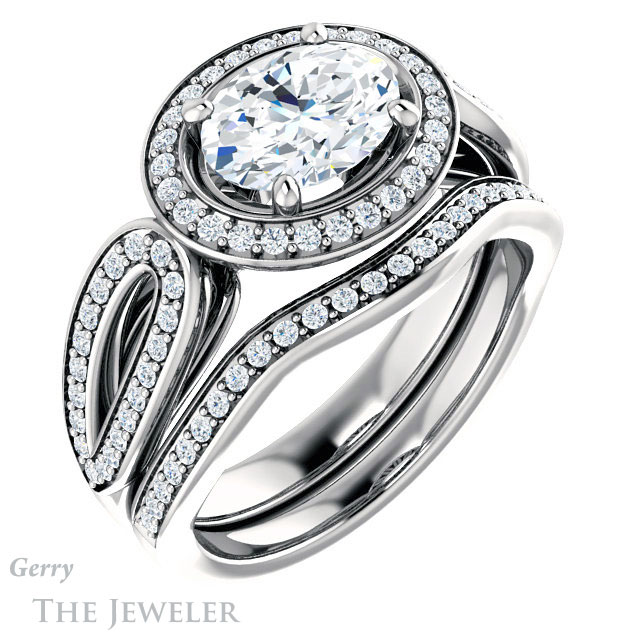 Oval Shaped Forever One Moissanite Engagement Ring #GTJ1226-oval-fo-w