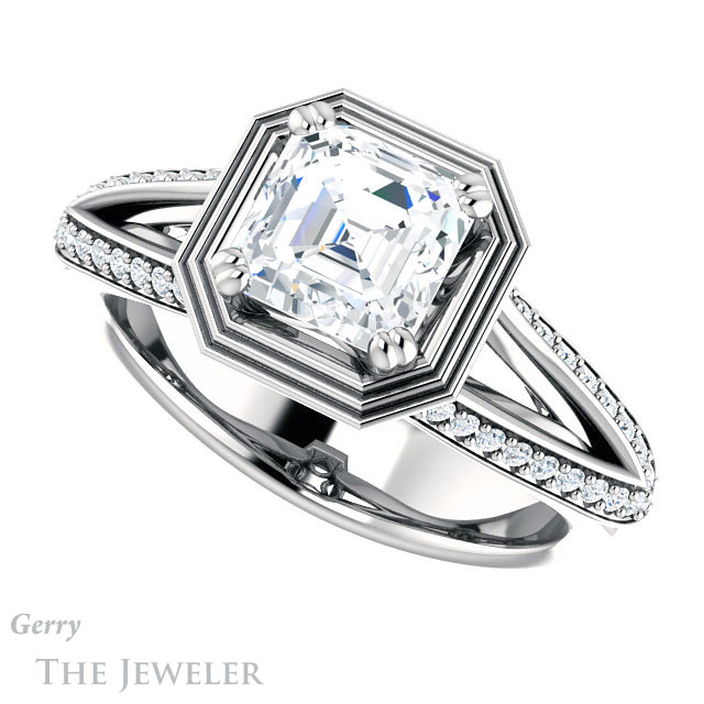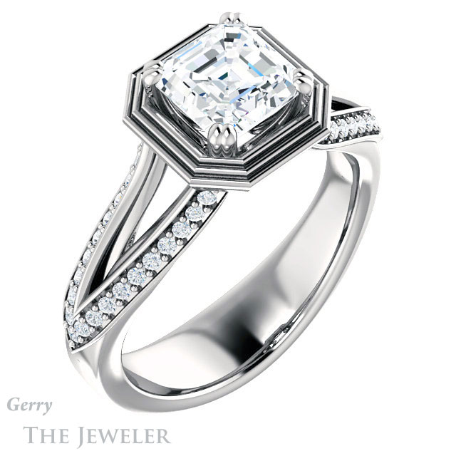 Asscher Cut Forever One Engagement Ring Setting #GTJ1228-asscher-fo-w
