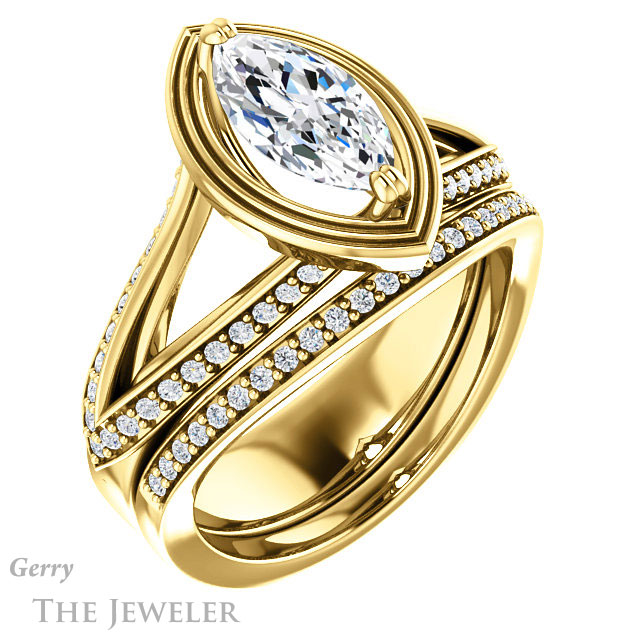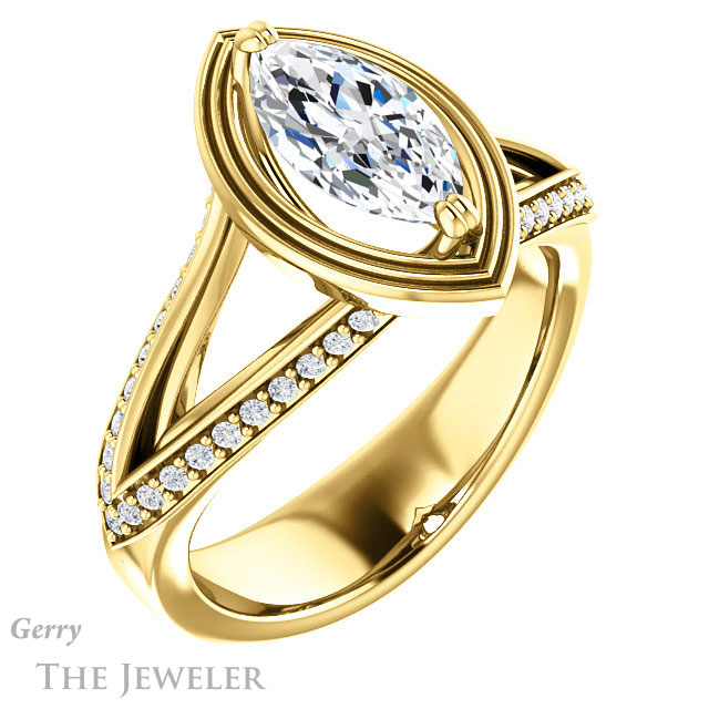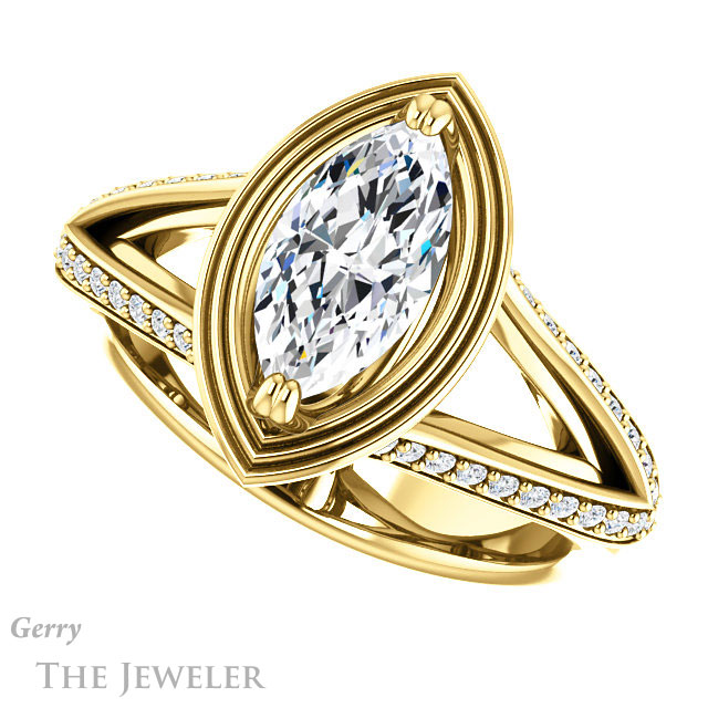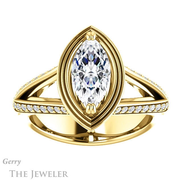 Marquise Cut Forever One Moissanite Engagement Ring #GTJ1228-marquise-fb-y