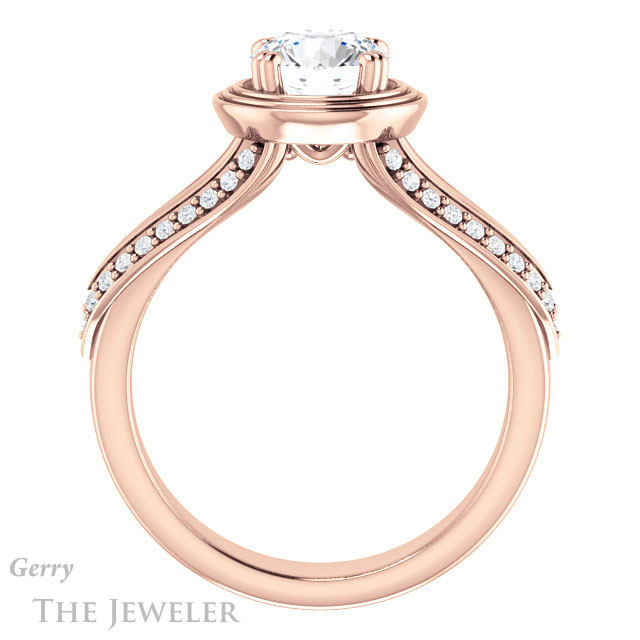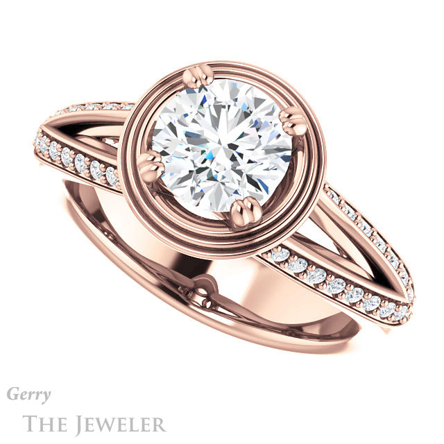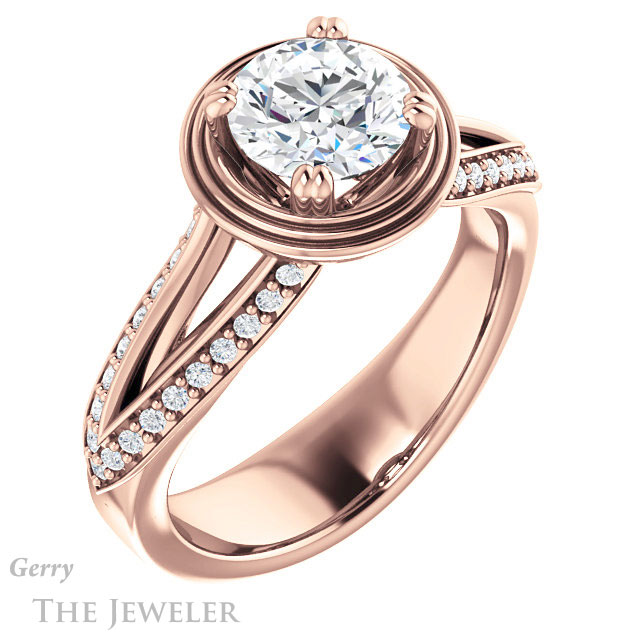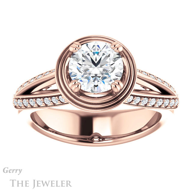 - This design can be set with your choice of certified lab grown diamond or moissanite center gem.Â