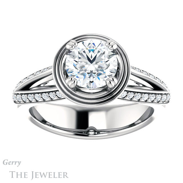 Round Cut Forever One Moissanite Engagement Ring #GTJ1228-round-fo-w