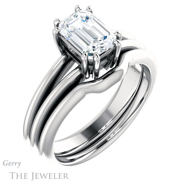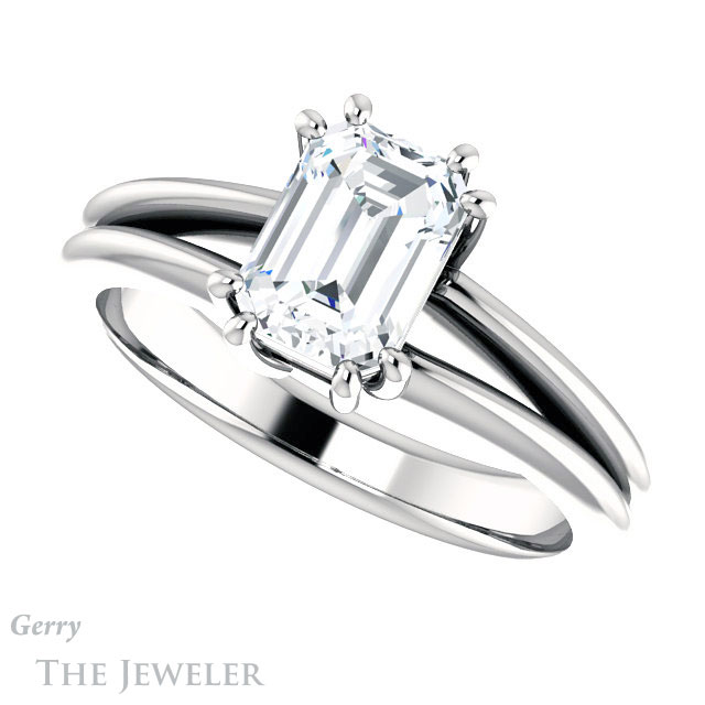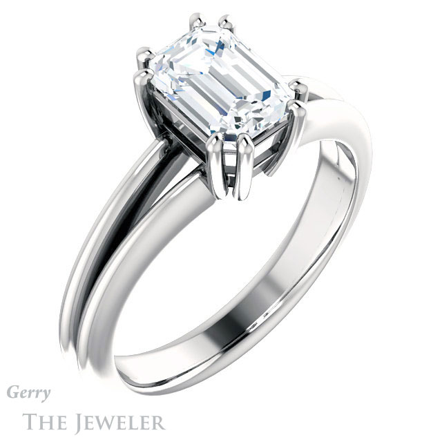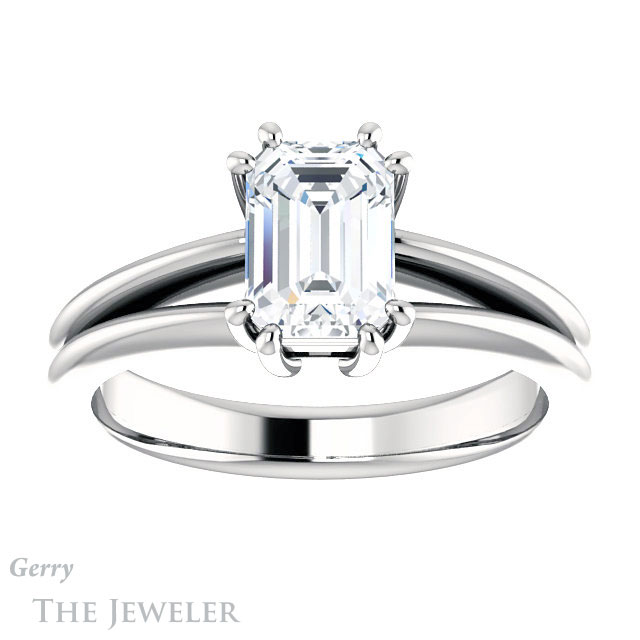 Emerald Cut Forever One Moissanite Engagement Ring #GTJ1230-emerald-fb-w