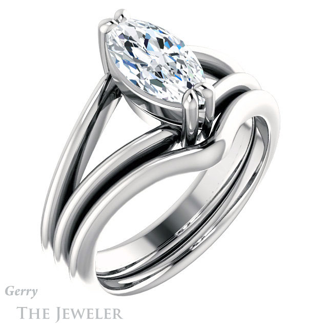 Marquise Cut Forever One Moissanite Engagement Ring #GTJ1230-marquise-fb-w