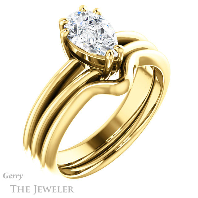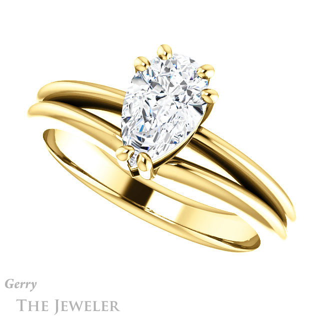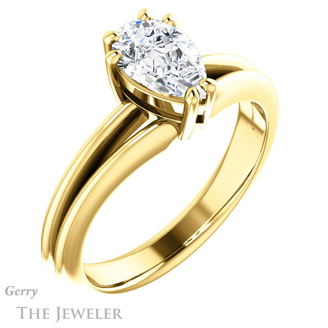 Pear Shaped Forever One Moissanite Engagement Ring #GTJ1230-pear-fb-y