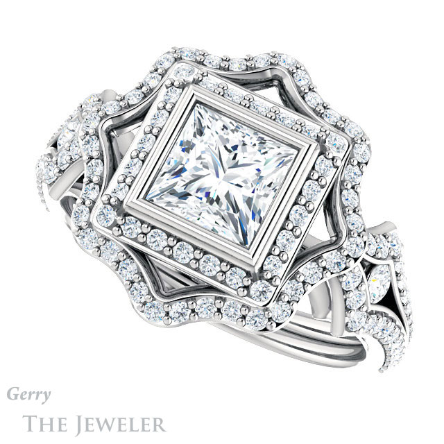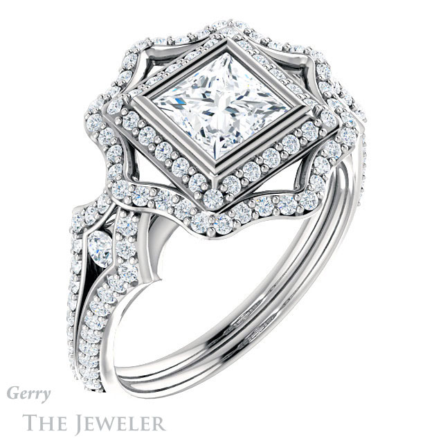 Princess Cut Forever One Moissanite Engagement Ring #GTJ1233-square-fo-w