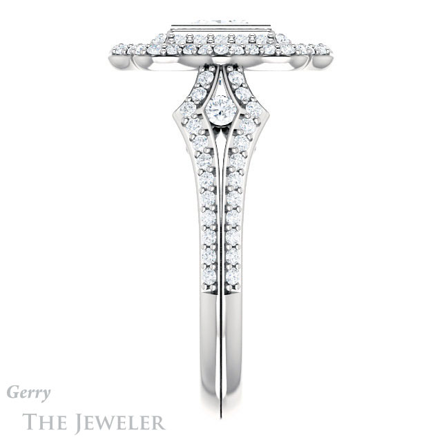 - This design can be set with your choice of certified lab grown diamond or moissanite center gem.Â