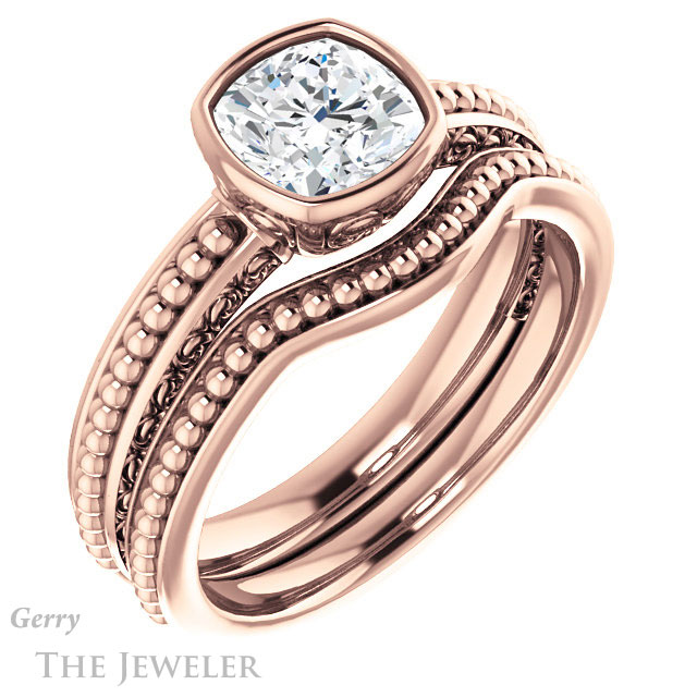- This design can be set with your choice of certified lab grown diamond or moissanite center gem.Â