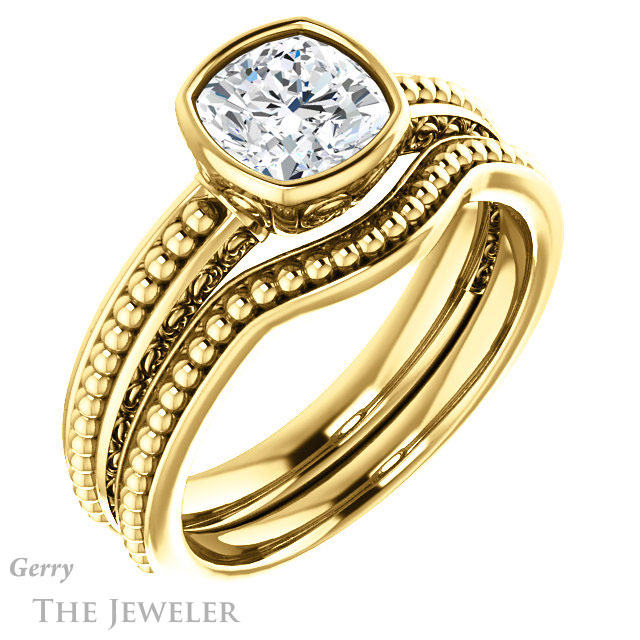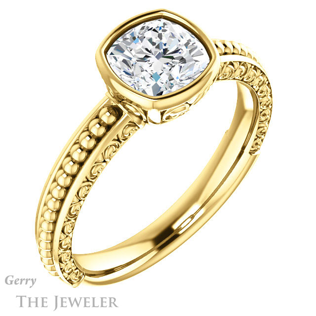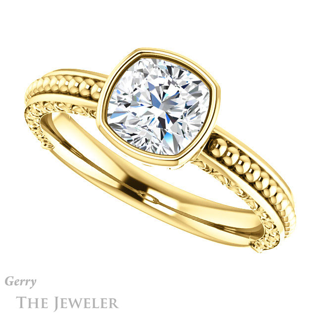 Cushion Cut Forever One Moissanite Engagement Ring #GTJ1235-cushion-fo-y