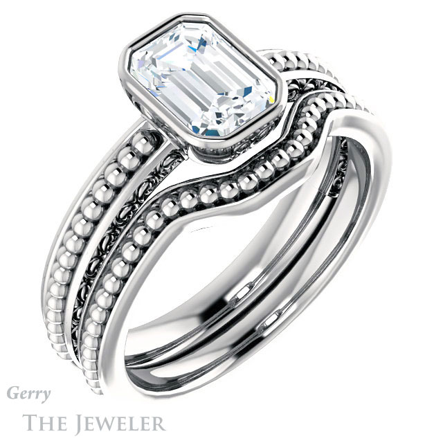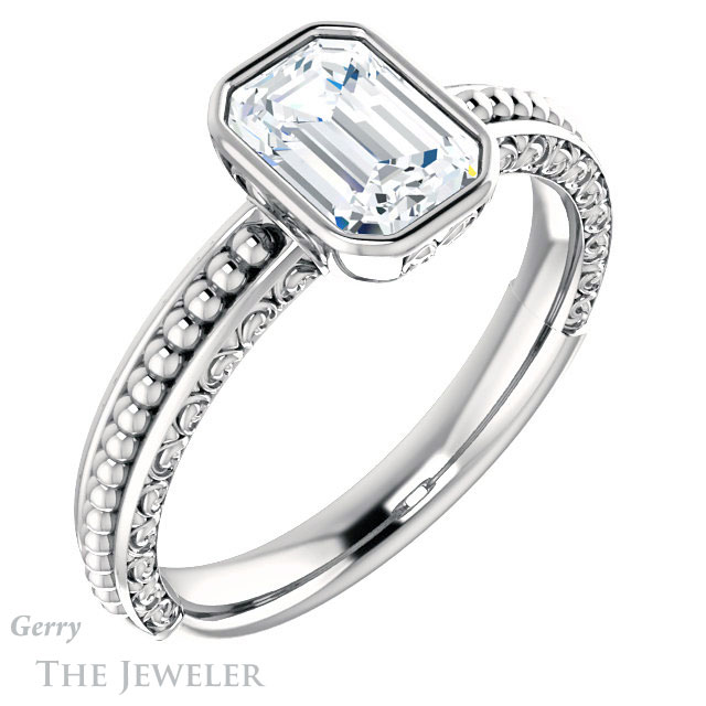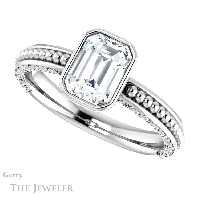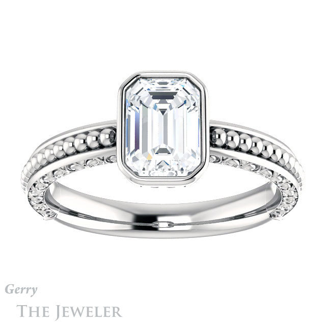 Emerald Cut Forever One Moissanite Engagement Ring #GTJ1235-emerald-fb-w