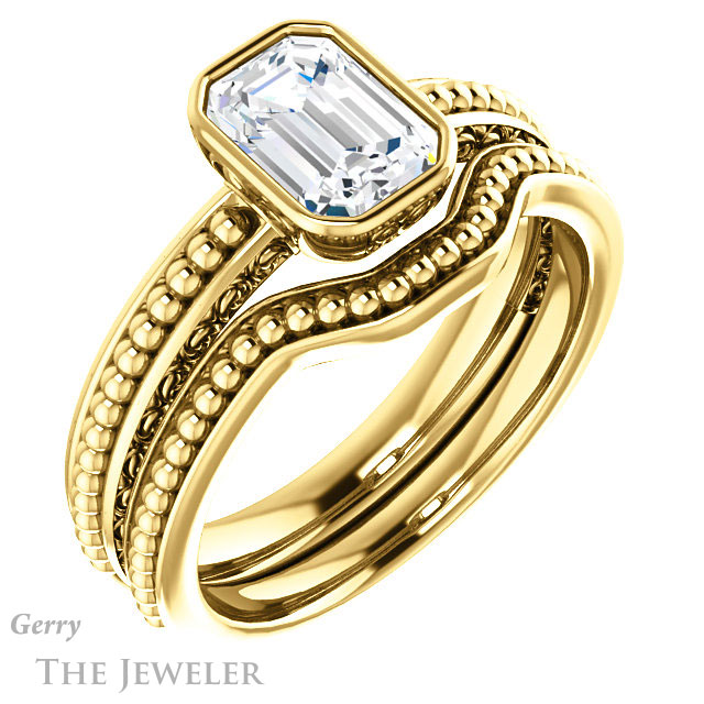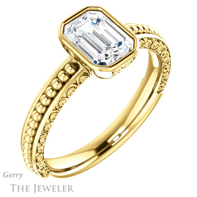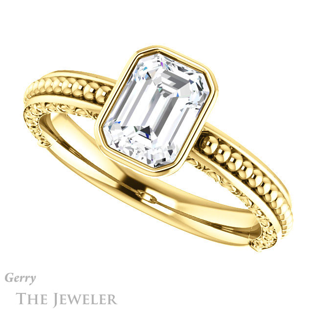 Emerald Cut Forever One Moissanite Engagement Ring #GTJ1235-emerald-fb-y