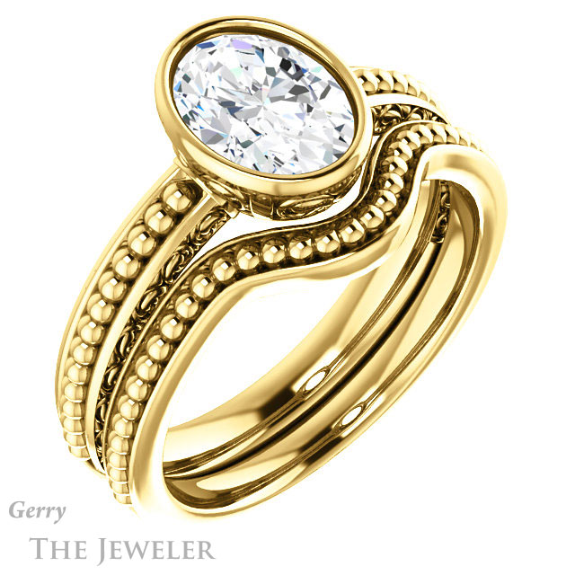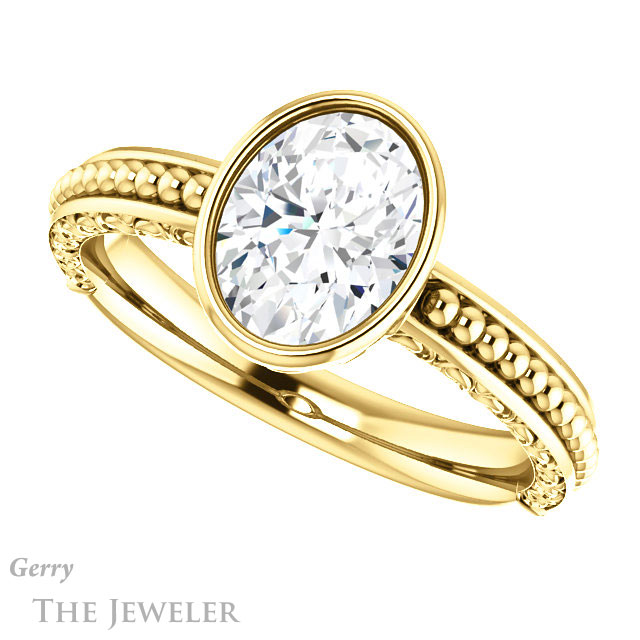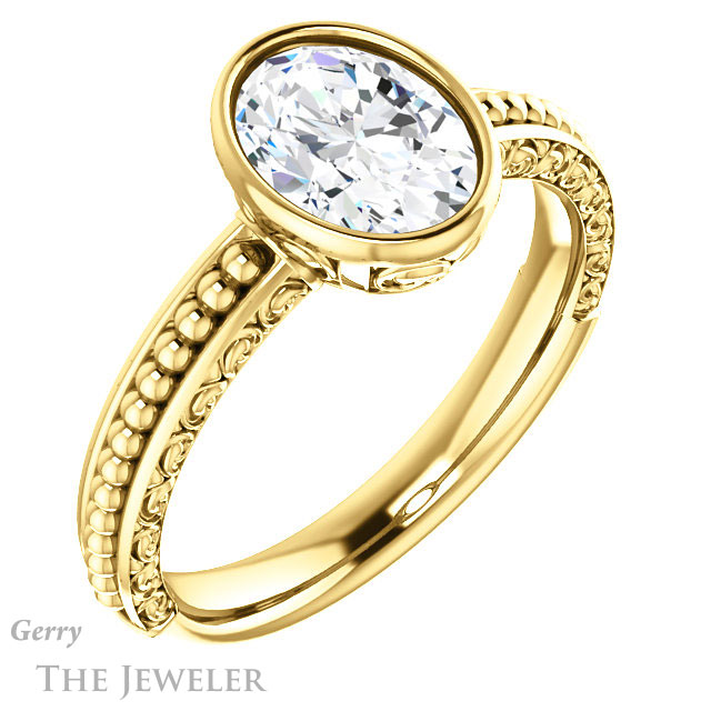 Oval Shaped Forever One Moissanite Engagement Ring #GTJ1235-oval-fo-y