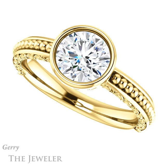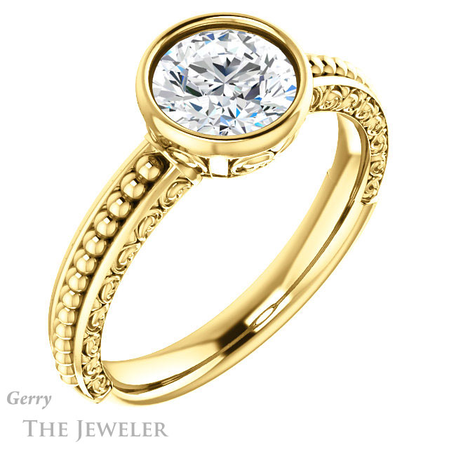 Round Cut Forever One Moissanite Engagement Ring #GTJ1235-round-fo-y