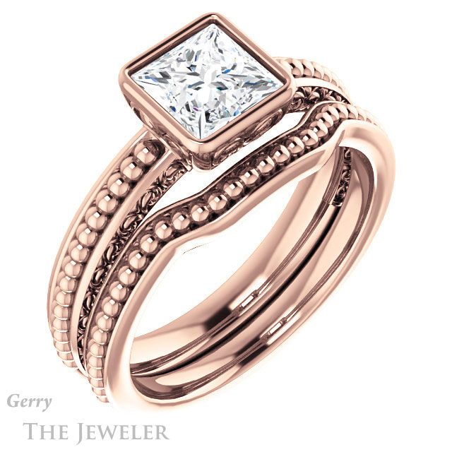 - This design can be set with your choice of certified lab grown diamond or moissanite center gem.Â