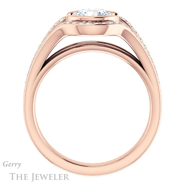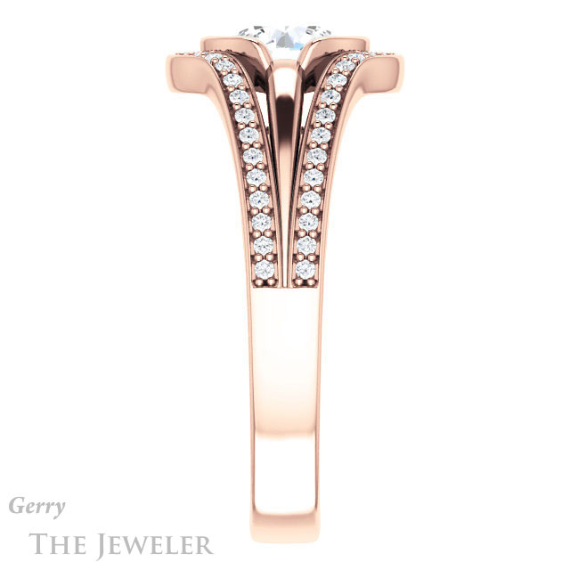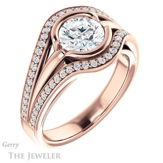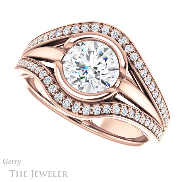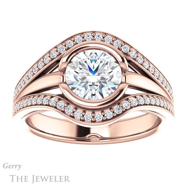 - This design can be set with your choice of certified lab grown diamond or moissanite center gem.Â