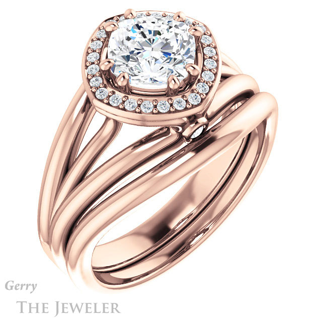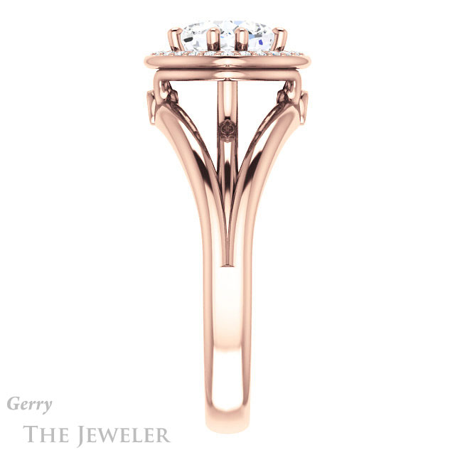 - This design can be set with your choice of certified lab grown diamond or moissanite center gem.Â