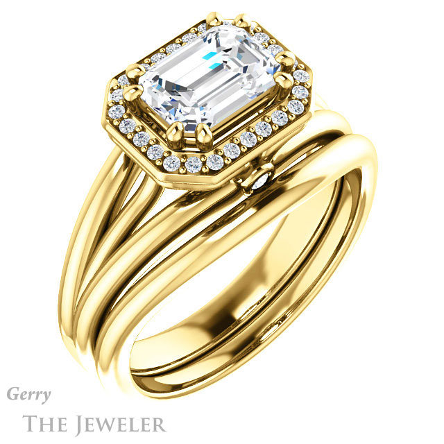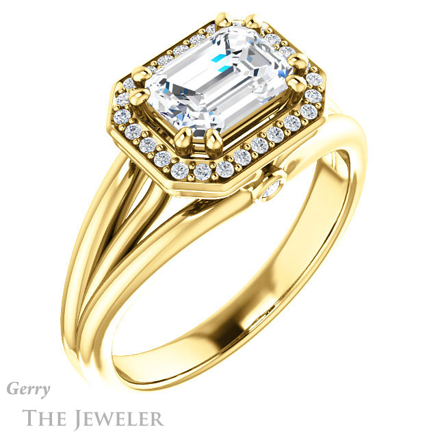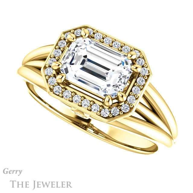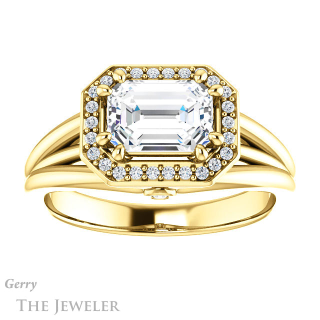 Emerald Cut Forever One Moissanite Engagement Ring #GTJ1237-emerald-fb-y