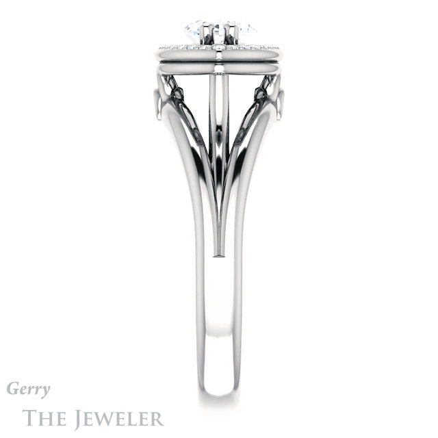 - This design can be set with your choice of certified lab grown diamond or moissanite center gem.Â