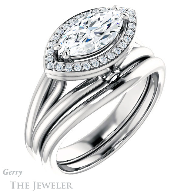Marquise Cut Forever One Moissanite Engagement Ring #GTJ1237-marquise-fb-w