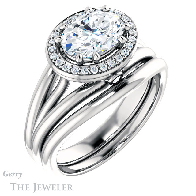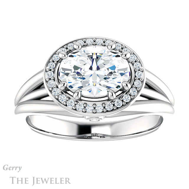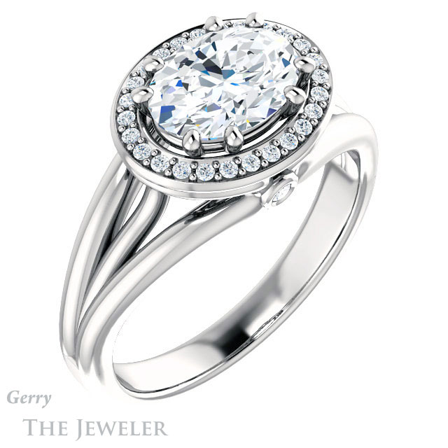 Oval Shaped Forever One Moissanite Engagement Ring #GTJ1237-oval-fo-w