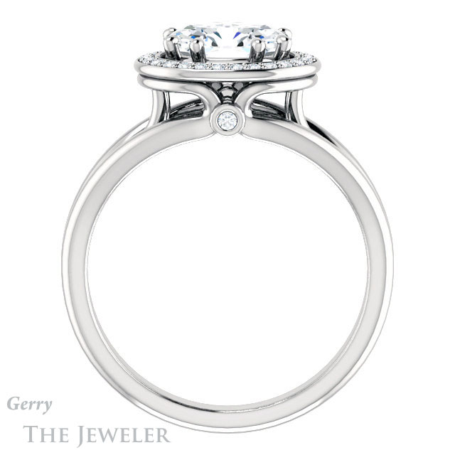 - This design can be set with your choice of certified lab grown diamond or moissanite center gem.Â