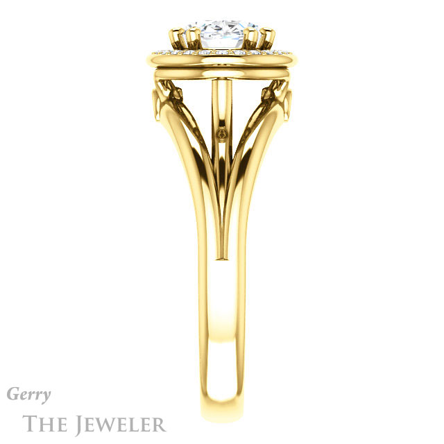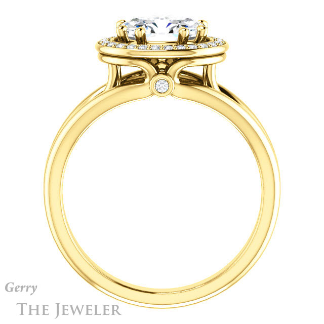- This design can be set with your choice of certified lab grown diamond or moissanite center gem.Â